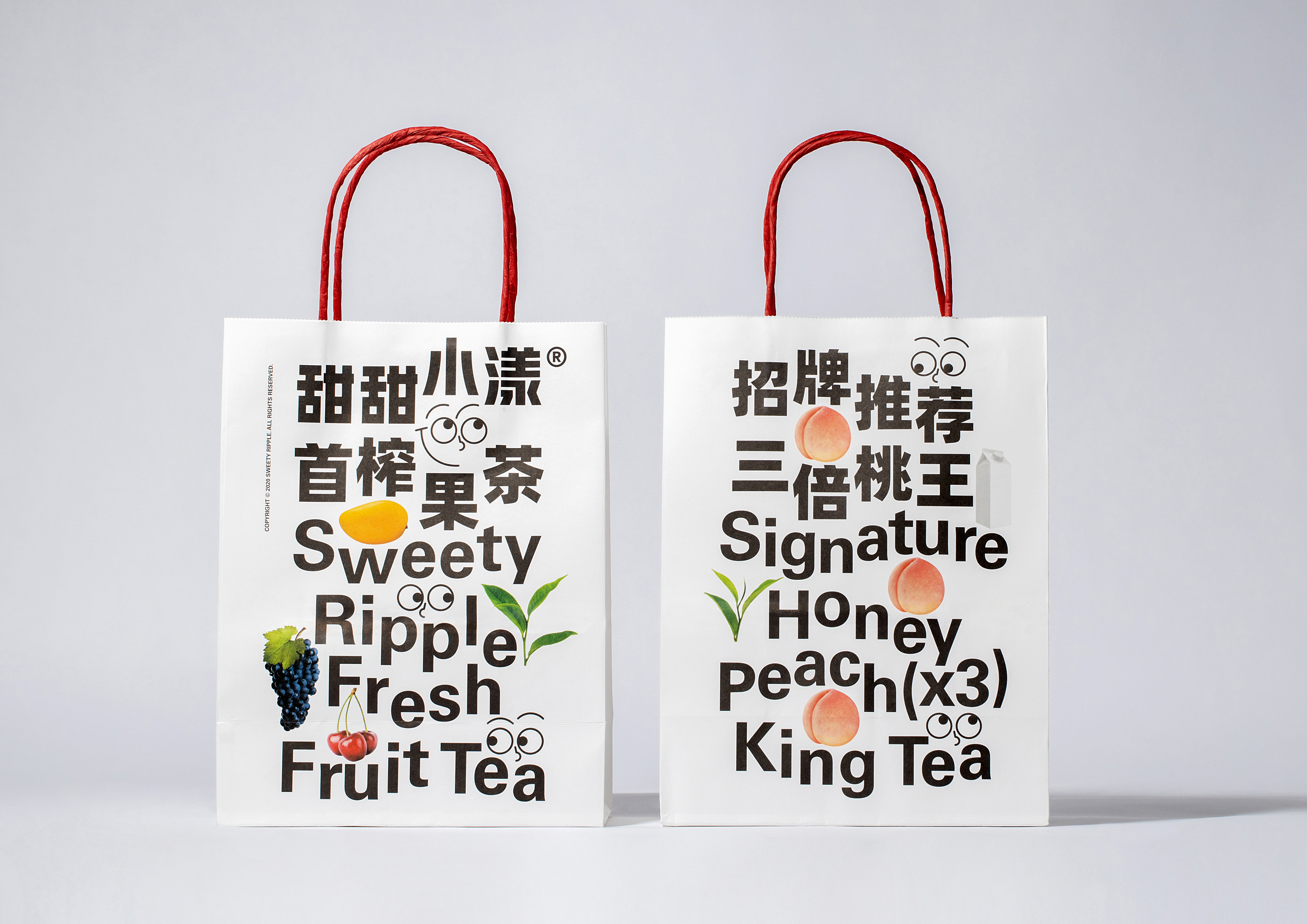 Sweety Ripple is a new brand of tea drinks and its main product is fresh fruit tea. In the visual design of brand, I expressed the core points of brand promotion, such as ripple, satisfaction and fresh. First of all, I set the ups and downs of the format system to echo the brand name Sweety Ripple to describe the product experience. Secondly, I designed witty and satisfied expression illustrations to establish emotional communication with consumers. Finally, I used raw material pictures without modification and typesetting without information hierarchy to reflect the fresh and non additive features of the product. There is no logo in the traditional sense in the visual design of Sweety Ripple, I combined information, expression illustrations and pictures in a wavy format, open and rich, which constitutes a unique brand visual memory point.